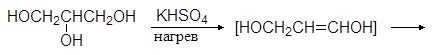 Отщепление воды от диолов и полиолов в первую очередь будет проходить внутримолекулярно. Так, при дегидратации глицерина (нагревание с гидросульфатом калия) образуется акролеин: