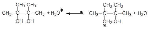 Дегидратация пинакона в присутствии кислоты сопровождается пинаколиновой перегруппировкой,