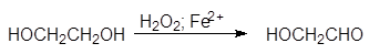 Окисление этиленгликоля протекает различно, в зависимости от окислителя и условий реакции. Так, при действии пероксидом водорода в присутствии солей двухвалентного железа (реагент Фентона) образуется гликолевый альдегид: