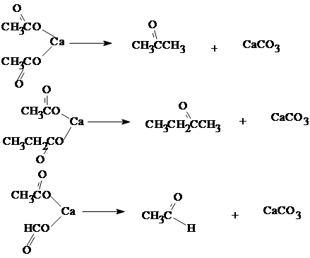 Если взять смесь солей двух кислот или смешанную соль, то также протекает реакция между молекулами разных солей. Если же одна из солей - формиат, то получается альдегид: