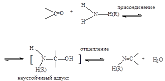 Наиболее обширным классом соединений, которые вступают в реакции присоединения - отщепления, являются аммиак и его производные. Продукты этих реакций содержат связь C=N: