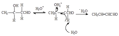Альдоль под действием разбавленной кислоты отщепляет воду даже при комнатной температуре, поэтому конденсацию, катализируемую кислотой, практически невозможно остановить на стадии b-оксиальдегида: