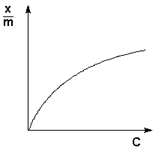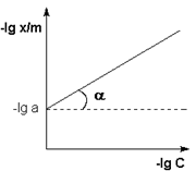 Г. Фрейндлих показал, что при T = const удельная адсорбция (число молей адсорбированного газа или растворённого вещества, приходящееся на единицу массы адсорбента), обозначаемая x/m, пропорциональна равновесному давлению (для газов) или равновесной концентрации (для веществ, адсорбируемых из раствора) адсорбируемого вещества, возведённым в степень меньше единицы.
