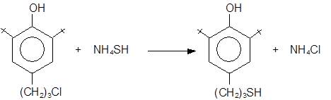 · Получен 4-(g-меркаптопропил)-2-трет.-бутилфенол взаимодействием 4-(g-хлорпропил)-2-трет.-бутилфенола с 20%-ным водным раствором гидросульфида аммония NH4 HS в закрытой системе.