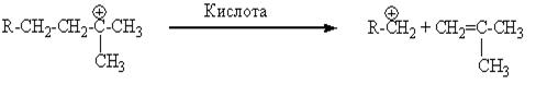 Процесс гидрокрекинга состоит главным образом из реакций каталитического крекинга иона карбония, катализируемых кислотными центрами, сопряженных с реакциями гидрирования. Вследствие большой склонности к образованию ионов третбутилкарбония образуется фракция С4 с высоким содержанием изобутана.