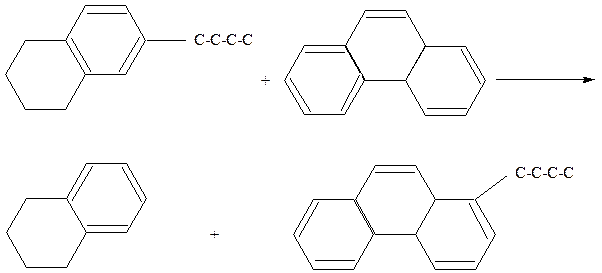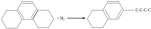 Гидрокрекинг полициклических ароматических соединений отличается крайней сложностью механизма протекания реакций. Сюда входит перенос бутиловых групп, сформированных в ходе частичного гидрирования и расщепления колец, циклизация до более высокоциклических промежуточных соединений и последующий крекинг этих полициклических соединений.
