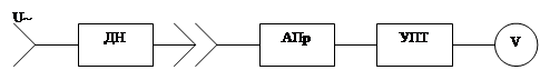 Рис.1. Структурная схема аналогового электронного вольтметра с амплитудным преобразователем