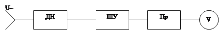 Вольтметр средневыпрямленного значения (рис.6) состоит из входного делителя напряжения ДЯ, широкополосного транзисторного усилителя ШУ, выпрямительного преобразователя Пр и магнитоэлектрического индикатора.
