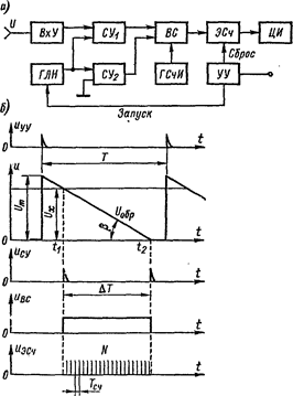 Рис. 3-30. Цифровой вольтметр с время-импульсным преобразованием