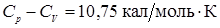У жидкостей, как и газов, следует различать теплоемкость при постоянном объеме и при постоянном давлении. Разность молярных теплоемкостей равна Cp – CV равна работе расширения pdV ( p – молекулярное давление ) моля жидкости при его нагревании на один градус, поэтому численное значение этой разности зависит от значения коэффициента объемного теплового расширения жидкости. В отличие от идеальных газов значение Cp - CV у жидкостей не равно постоянной R, а может быть и больше и меньше в зависимости от значения коэффициента объемного расширения и от величины внутренних сил взаимодействия частиц жидкости, против которых совершается работа расширения (давление p в выражении pdV связано именно с этими силами).