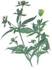 Описание растения. Череда трехраздельная—однолетнее растение семейства сложноцветных, достигающее в высоту 15—60 (100) см, с небольшой, сильноразветвленной стержневой корневой системой. Стебель прямостоячий, голый или с редкими волосками, иногда почти от основания супротивно ветвящийся. Листья супротивные, темно-зеленые, на коротких крылатых черешках, сросшихся своими основаниями. Листовая пластинка длиной 3—7 см и шириной 1—4 см, с зубчатыми по краю долями.