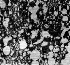 Без признаков воспаления в головном и иногда спинном мозге обнаруживаются признаки гибели нервных клеток и их отростков. В мозговой ткани образуются вакуоли, количество которых постепенно увеличивается. На основе таких первично-дегенеративных процессов (без признаков воспаления!) в головном и иногда спинном мозге медленно и постепенно развивается картина формирования так называемого "губкообразного состояния" - мозговая ткань на гистологических срезах выглядит как губка из-за огромного количества вакуолей (рис.1 и 2).