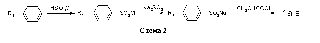 Соединения 1a-в получали на основе толуола, хлор- и бромбензола по методикам, изложенным в работах [10,11] (схема 2).
