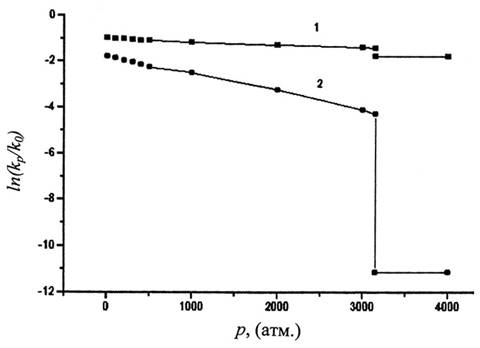 где p- внешнее давление, R - универсальная газовая постоянная. Аналогично рассматриваются и реакции в кристалле [3]. В этом случае дополнительная энергия D Е равна энергии упругой деформации кристалла на величину