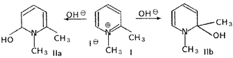 В результате нуклеофильной атаки исходной соли (I) возможно образование двух псевдооснований IIa,b (схема 2):