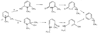В ряде случаев (рециклизация индолизинов, никотерина, раскрытие пиридинового ядра в солях Цинке и т. д.) образование ангидрооснования в принципе невозможно.