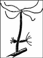 Для того чтобы рассмотреть пойманную гидру, необходимо дать ей время расправиться. Поэтому можно порекомендовать кусочек листа кувшинки или другого растения, на котором мы обнаружили упомянутые комочки, положить в небольшую баночку с водой, затем поставить ее и подождать минут 10-15, чтобы гидра расправилась. Надо иметь в виду, что при сотрясении гидры снова съеживаются; поэтому самое лучшее, если есть возможность, поставить банку с гидрами на какой-нибудь столб, пень и т. п., на котором можно затем рассмотреть гидр, не трогая сосуда. На расправившихся гидрах мы можем различить тело гидры и ее щупальца, окружающие ротовое отверстие (рис. 167).