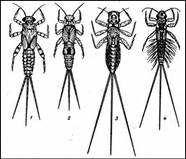 По образу жизни и связанному с ним биологическому облику личинок поденок можно разбить на 4 группы:
