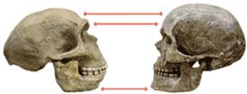 Неандертальцы населяли Европу и Западную Азию в период от 300 тысяч до 28 тысяч лет назад. Какое-то время они сосуществовали с человеком современного анатомического типа, расселившимся в Европе около 40 тысяч лет назад. Различие в форме и размере черепов неандертальца (слева) и предка человека видно с первого взгляда. Предположительно, предки неандертальцев и современных людей разошлись 500 тысяч лет назад. |