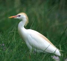 Цапля египетская (Bubulcus ibis) средних размеров цапля, имеющая в общем белую окраску, но верхние части головы, спины и зоба у нее винно-охристые, покрытые удлиненными рассученными перьями, которые к осени выпадают. Клюв у этой птицы лимонно-желтый. Длина крыла 22-25 см.