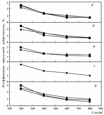 Учитывая разнонаправленность изменения Крел и Кур при наложении давления прессования, А.Ф. Красюков ввел понятие коэффициента прессовой добротности (Адц), характеризующего преобладание пластических свойств над упругими.