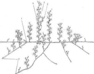 / — гидрорйза, 2 — побег, 3 — боковая ветвь, 4 —гонангий, 5 — верхушка гидроризы