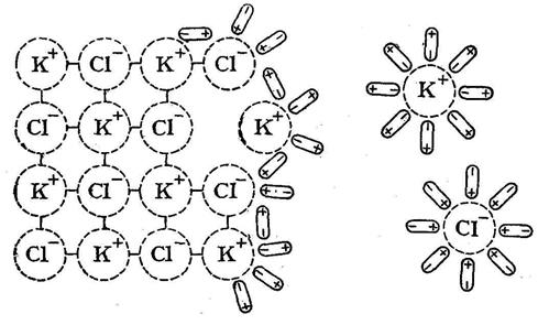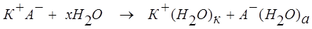 К+А- + хН2О <=> К+(Н2О)к + А-(Н2О)а