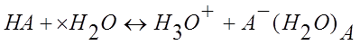 КА + хН2О <=> К+(Н2О)к + А-(Н2О)а.