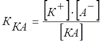где [К+], [A-] и [KA] - концентрации в растворе ионов