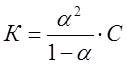Связь между константой К и степенью диссоциации a может быть найдена следующим образом. Концентрация ионов К+ и А- в растворе равна