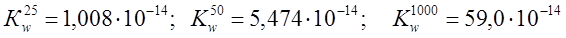 . При комнатной температуре принимают округленное значение ионного произведения воды 10-14.