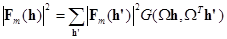 где h = (h,k,l) обозначает миллеровские индексы, а - транспонированную матрицу оператора . Действие на |Fm(h)|2 будет в общем случае приводить к возникновению точек в обратном пространстве, которые не описываются целочисленными индексами (h,k,l). Значения |Fm(h)|2 в таких точках могут быть получены с помощью так называемой интерференционной функции G [2]:
