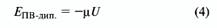 а энергия дипольной молекулы этанола в однородном электрическом поле U выражением: