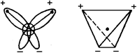 атому кислорода. В результате атомы водорода приобретают эффективные положительные заряды, так что на этих атомах создаются два положительных полюса. Центры отрицательных зарядов неподеленных электронных пар атома кислорода, находящиеся на