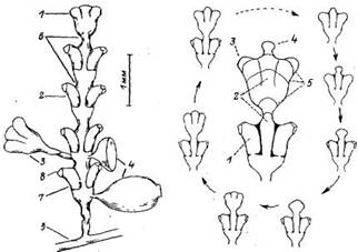 Рис. 1. Схема строения нормального побега Dynamena pumila: