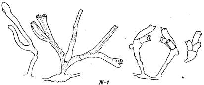 II—1(12). На верхушке побега гидрант. Гидрант ненормален по форме, что выражается либо в его больших размерах, либо в необычной искривленности гидротеки. В результате этой аномалии дальнейший рост побега становится невозможен. Встречается редко.