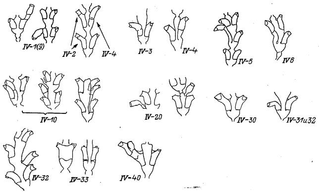 Рис.8. Отклонения от нормы формы и расположения гонотек Dynamena pumila (группа IV)