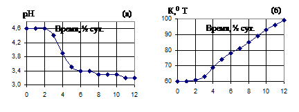 Рис. 6. Изменение активной (а) и титруемой (б) кислотности