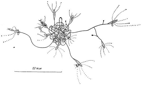 Один и тот же результат—контроль возможно большего объема окружающего пространства—гидроиды достигают по крайней мере двумя различными путями: либо увеличением размеров ловчего аппарата гидранта, либо усовершенствованием колониальной организации.