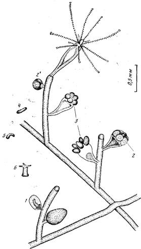 При хорошем питании на ножке гидранта может образоваться почка (рис. 2, 2), которая будет сначала расти (рис. 1, Б, 5), а затем на ее дистальном конце сформируется гидрант. Таким образом возникают неправильно разветвленные побеги.