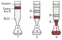 1 - нанесение образца на колонку; 2 -середина опыта; 3 - окончание опыта.