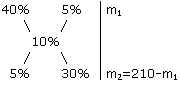 m1 =30 г; m2 = 210 - m1 = 210 - 30 = 180 г