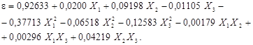 В результате математической обработки экспериментальных данных и отсева статистически незначимых (при уровне значимости 0,05) данных получено следующее полное уравнение регрессии (1) с безразмерным масштабом независимых переменных: