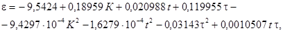 После подстановки безразмерных переменных (1) в уравнение (3) получено сокращенное уравнение регрессии (4) с размерным масштабом независимых переменных: