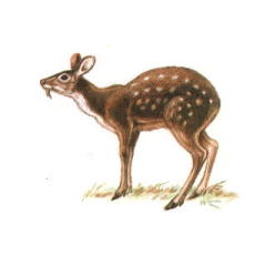 Кабарга – самый маленький безрогий олень. Несмотря на то, что кабарги и отнесены к семейству оленевых, у них нет ни рогов, ни слезных ямок под глазами. А у самцов вообще по бокам рта расположены длинные клыки, как у кабана, которые растут всю жизнь.