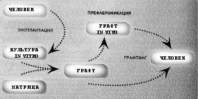 Иногда при создании графта используют технологию префабрикации: конструкцию вначале помещают не на постоянное место, а в область, хорошо снабжаемую кровью, для дозревания и формирования микроциркуляции внутри графта.