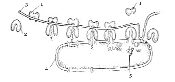 2 – большая субъединицы рибосомы; 3 – молекула рРНК;