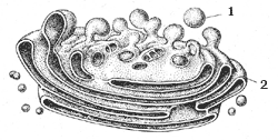 Рис. 10. Аппарат Гольджи: 1 – пузырьки; 2 – цистерны