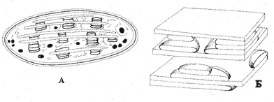 Рис. 12. Хлоропласты (А) и тилакоидные мембраны (Б)
