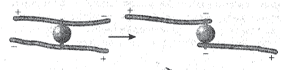 Рис. 3. Упрощенная схема возможного механизма самоорганизации микротрубочек и органелл во фрагменте цитоплазмы, основанная на данных Родионова и Бориси. Слева – две микротрубочки, соединенные с разными участками одной органеллы (кружок). Предполагается, что присоединение осуществляется через посредство специального белка – динеина, способного двигать органеллы вдоль микротрубочек от плюс-конца к минус-концу. Справа – вызываемые динеином взаимные перемещения микротрубочек и органеллы привели к тому, что эта органелла образовала подобие центра, от которого отходят в противоположные стороны две микротрубочки. Ориентированные плюс-концами к периферии